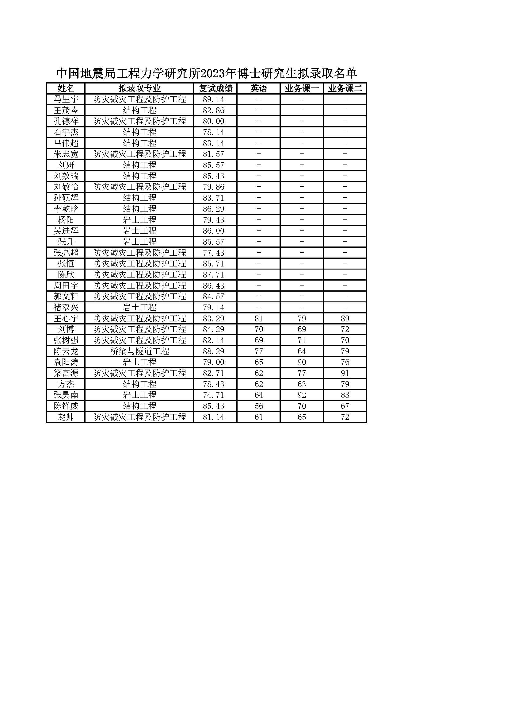附件:中國地震局工程力學研究所2023年博士研究生擬錄取名單