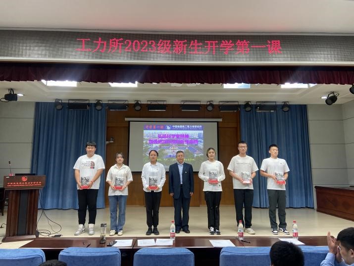 入所教育結(jié)束后,李山有講授開學(xué)第一課。他帶領(lǐng)大家重溫了劉恢先教授的科學(xué)家精神和愛國愛黨情懷,強(qiáng)調(diào)科研誠信的重要性,勉勵(lì)大家要牢記使命責(zé)任,秉承工力所“嚴(yán)謹(jǐn)、求真、博學(xué)、創(chuàng)新”的精神,學(xué)到知識(shí)、學(xué)會(huì)做人。最后,他向黨員代表贈(zèng)送了《習(xí)近平的七年知青歲月》一書,鼓勵(lì)同學(xué)們成為有理想、敢擔(dān)當(dāng)、能吃苦、肯奮斗的新時(shí)代青年。