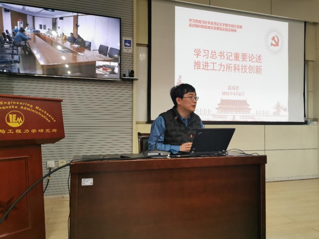 溫瑞智主任同與會科技人員一道共同學(xué)習(xí)了習(xí)近平總書記關(guān)于防災(zāi)減災(zāi)救災(zāi)重要論述和防災(zāi)減災(zāi)救災(zāi)重要指示批示精神,對創(chuàng)新在國家發(fā)展全局中處于核心地位分享了自己的認(rèn)識和思考??萍紕?chuàng)新要堅持政治引領(lǐng),貫徹落實習(xí)近平總書記“兩個堅持”“三個轉(zhuǎn)變”重要論述和“以防為主、防抗救相結(jié)合”的工作方針。溫主任結(jié)合我所科研工作實際,系統(tǒng)介紹了近年來科技創(chuàng)新工作取得的進(jìn)展和成績,結(jié)合自然災(zāi)害防治、韌性城鄉(xiāng)、地震應(yīng)急和科考等生動地闡述了唯有科技創(chuàng)新才是推進(jìn)防震減災(zāi)事業(yè)現(xiàn)代化建設(shè)高質(zhì)量發(fā)展的重要動力。最后,溫主任用“夯實監(jiān)測基礎(chǔ)、加強(qiáng)預(yù)報預(yù)警、摸清風(fēng)險底數(shù)、強(qiáng)化抗震設(shè)防、保障應(yīng)急響應(yīng)”作為培訓(xùn)報告的結(jié)語,表達(dá)了工力所廣大科技工作者踐行“防震減災(zāi),造福人民”的初心使命。