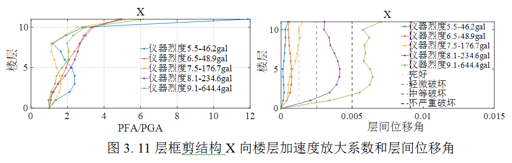 (3)本次地震記錄到的地震動卓越頻率范圍普遍較寬,PGV/PGA較大,對結構的破壞力較強,造成了震中區(qū)磨西鎮(zhèn)的房屋破壞嚴重。