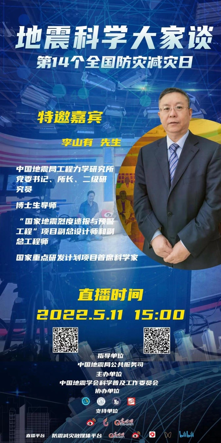在線訪談。5月11日,我所黨委書記、所長李山有研究員和副所長張令心研究員受邀參加由中國地震學(xué)會(huì)科學(xué)普及工作委員會(huì)主辦的“地震科學(xué)大家談”特別活動(dòng)。