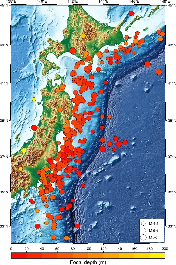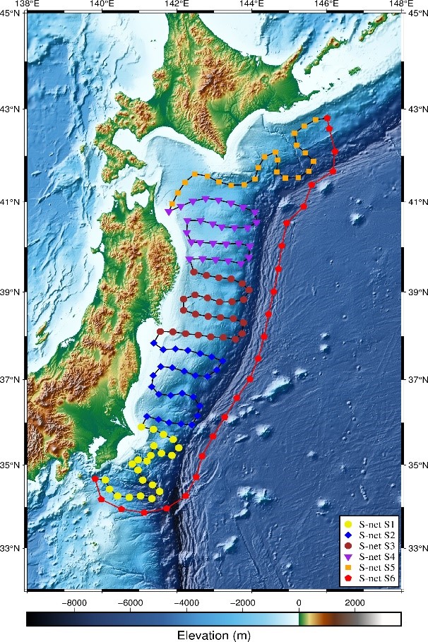 圖1 (a) 日本S-net海底臺(tái)站分布圖, (b) 地震事件分布圖