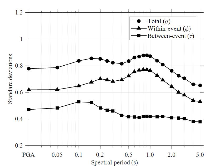 圖3 地震動(dòng)預(yù)測(cè)模型的標(biāo)準(zhǔn)差分布圖
