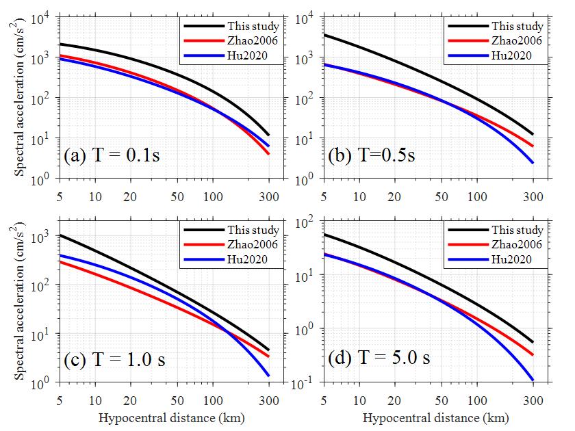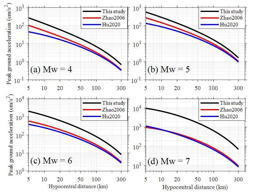 發(fā)布時(shí)間: 2024-04-01 點(diǎn)擊數(shù)量:213972)對(duì)比建立的海域地震動(dòng)預(yù)測(cè)模型和現(xiàn)有陸域地震動(dòng)預(yù)測(cè)模型的PGA和反應(yīng)譜的衰減差異,表明海域PGA和反應(yīng)譜大于相同震級(jí)和距離的陸域PGA和反應(yīng)譜,且隨著震級(jí)的增加,差異逐漸增大。(見圖4和圖5)。