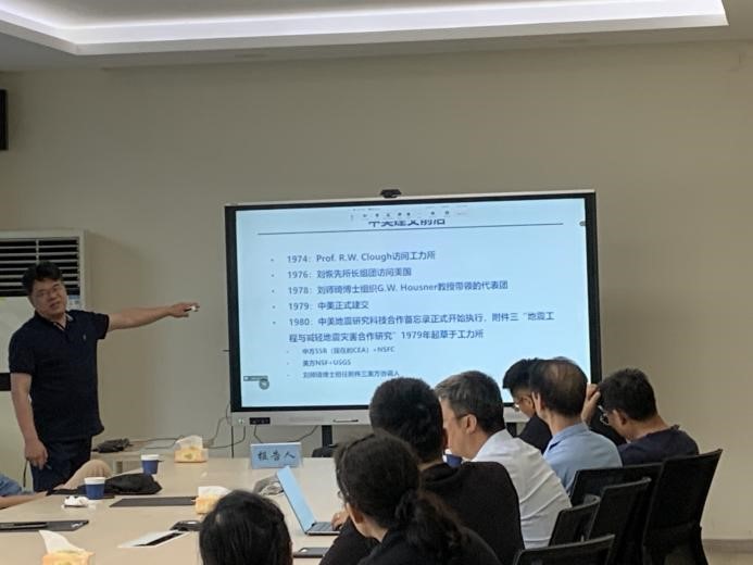 在學(xué)術(shù)沙龍報告會上,防災(zāi)科技學(xué)院薄景山研究員回答了土木工程領(lǐng)域中場地韌性的問題;王自法研究員講述了劉師琦博士對促進我所中美地震工程科技合作做出的突出貢獻;景立平研究員為研究生講解了水平場地土層振動周期計算方法;專家們對我所重新開啟《波動理論》研究生課程提出了建議。