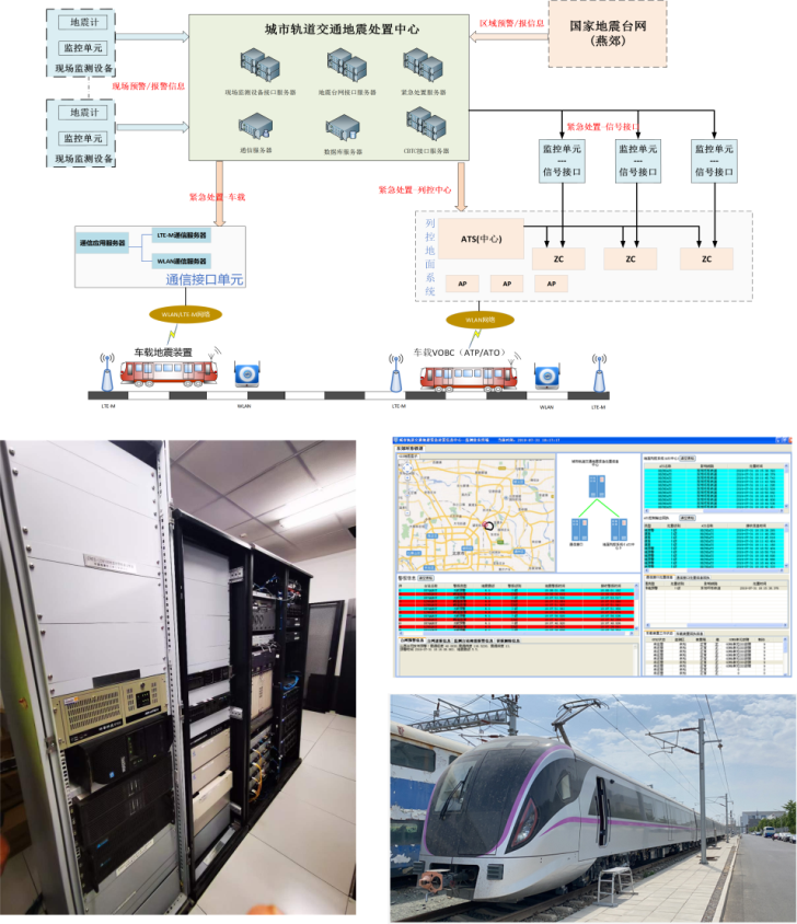 圖2 項(xiàng)目研發(fā)的城市軌道交通地震緊急處置系統(tǒng)及其在國(guó)家鐵道試驗(yàn)中心進(jìn)行示范應(yīng)用情況