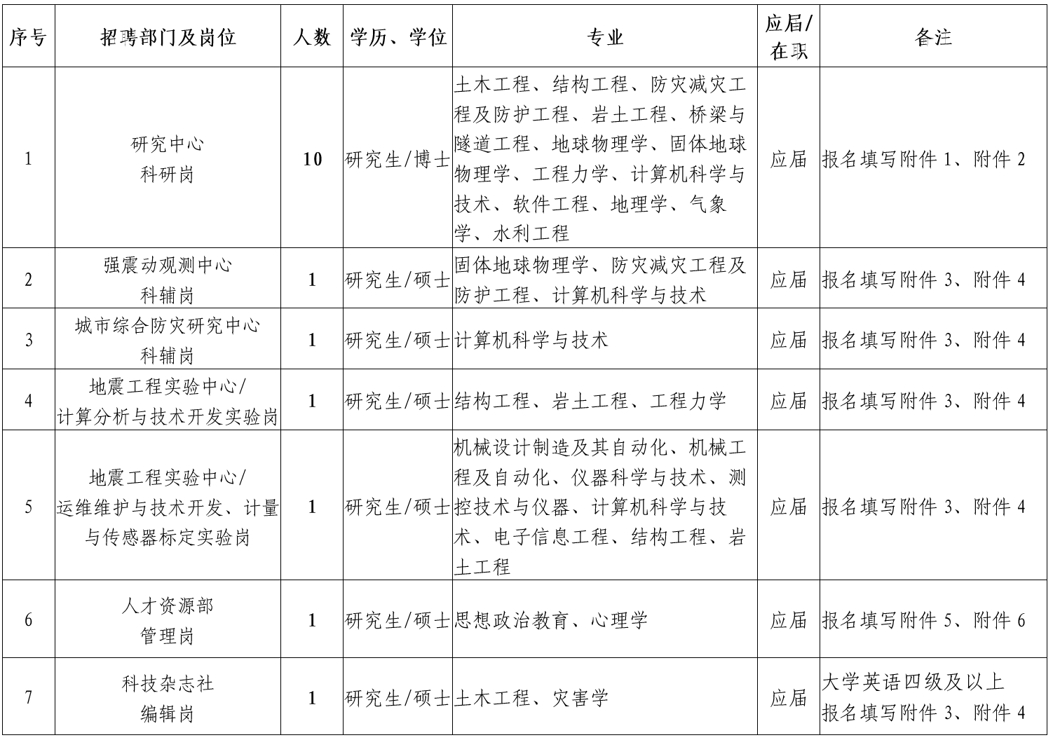 (2)熱愛(ài)防震減災(zāi)科研事業(yè),能全職在研究所相關(guān)學(xué)科科研崗位上工作,年齡一般不超過(guò)35周歲,科研成果特別突出者,年齡可適當(dāng)放寬。