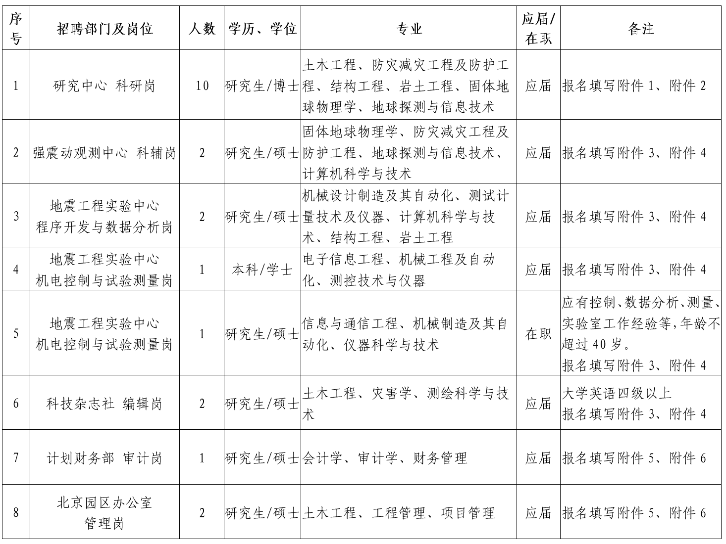(2)熱愛(ài)防震減災(zāi)科研事業(yè),能全職在研究所相關(guān)學(xué)科科研崗位上工作,年齡一般不超過(guò)35周歲,科研成果特別突出者,年齡可適當(dāng)放寬。
