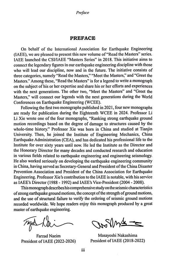 會(huì)上,謝禮立院士以《強(qiáng)地震動(dòng)按破壞強(qiáng)度的排序研究(Ranking strong earthquake ground motion recordings based on the degree of damage to structures caused by the whole time history)》為題做大會(huì)報(bào)告。IAEE前主席中島正愛(ài)教授親自主持。IAEE專門出資為謝禮立的此項(xiàng)研究成果以“閱讀大師”專著正式出版,贈(zèng)送給來(lái)自全球100多個(gè)國(guó)家和地區(qū)的四千多名與會(huì)學(xué)者。這本專著凝聚了謝禮立院士及其團(tuán)隊(duì)自本世紀(jì)初以來(lái)歷經(jīng)20余年的研究獲得的重要研究成果。